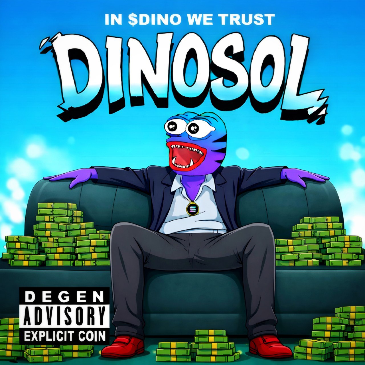 Dinosol is the most memetic dinosaur in existence. Reborn from extinction, it has claimed Solana as its playground to rally believers, grow a devoted community, and lead its army of loyal fans. Bold, adventurous, and unstoppable, Dinosol turns every move into legendary moments, inspiring its cult community to follow this iconic dino star.